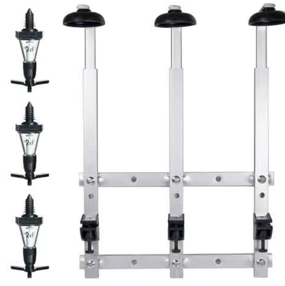 Mit dem Triple Flaschenhalter zur Wandmontage können Sie 3 Flaschen von je 0,7l bis 1l aufhängen und mit den im Set enthaltenen Dosierern ausstatten. Die Dosierer messen je 2cl ab und können mit anderen Portionsgrößen ausgetauscht werden (Artikel-Nr. 122G). So sind Sie für alle Bestellungen bestens vorbereitet und behalten auch an vollen Tagen den Überblick.
