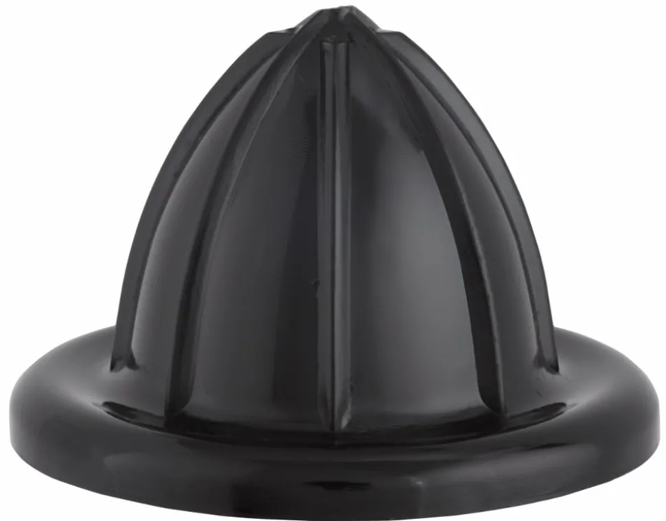Ein tolles Feature sind die drei auswechselbaren Presskegel aus schwarzem Kunststoff. Sie sind in ihrer Form und Größe speziell auf Zitrusfrüchte unterschiedlicher Größe abgestimmt, damit Sie immer schnell und einfach die maximale Menge Saft aus den Früchten herausholen. Der kleinste Presskegel ist für Limetten geeignet, der mittelgroße für Zitronen und Orangen, während Grapefruits mit dem größten Kegel am besten ausgepresst werden.