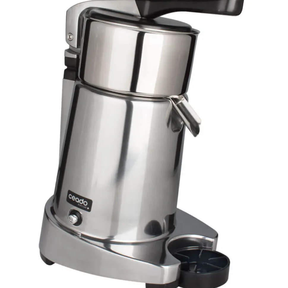 Die halbautomatische Zitruspresse von Ceado besteht aus einer Leichtmetalllegierung, während der abnehmbare Behälter aus Edelstahl besteht. Diese ansprechende Optik fügt sich in jedes Ambiente ein. Der leistungsstarke Motor wird luftgekühlt und schafft 1.400 Umdrehungen pro Minute. Beim Pressen von Früchten bleibt die Umgebung spritzfrei, dank des abnehmbaren Spritzschutzes. Im Lieferumfang sind drei unterschiedliche Aufsätze zum Auspressen verschiedener Zitrusfrüchte enthalten.