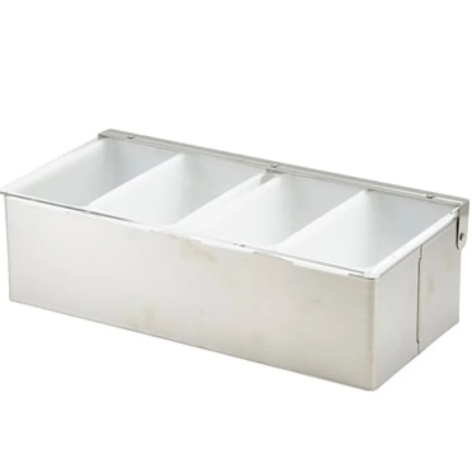 Produktdaten für Zutatenbehälter Edelstahl – 4 Fächer (29,5x14x9 cm)