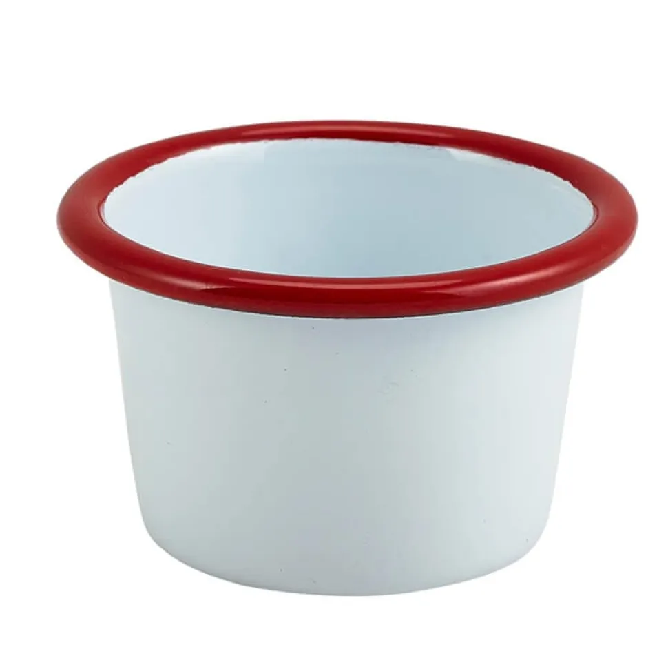 Produktdaten für Dipschale Emaille 90ml – weiß mit rotem Rand (12 Stk.)