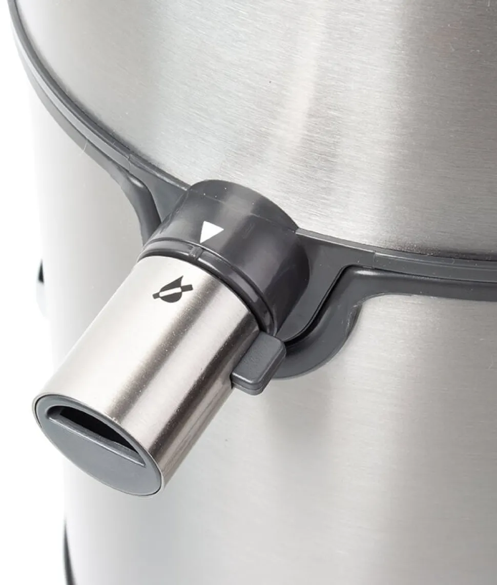 Der Saftbehälter hat eine praktische Skalierung in ml und in Flüssigunzen (fl. oz). Dank des Henkels kann der frische Saft direkt aus dem Behälter in die Gläser gefüllt werden. Die bei der Saftproduktion anfallenden Reste, wie Fruchtfleisch und Schalen, fallen in den Tresterbehälter. Er fasst 2 Liter und wird zum Entleeren einfach abgenommen.