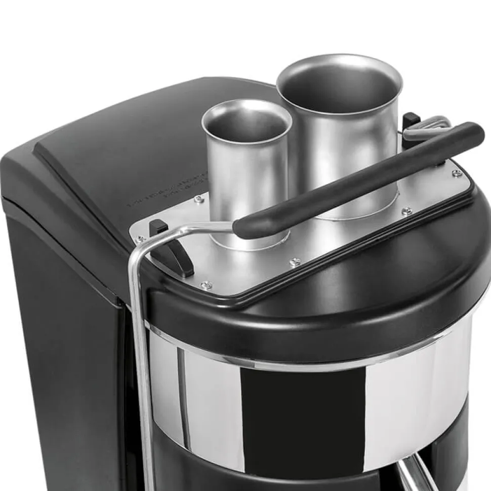 Dank des doppelten Einfüllsystems sparen Sie Zeit bei der Saftproduktion. Große Früchte wandern direkt in den 75-mm-Schacht, langes Pressgut wie Karotten oder Sellerie in den 50-mm-Schacht. Der automatische Fruchtfleischauswurf garantiert einen unterbrechungsfreien Workflow – ideal für Stoßzeiten im Tagesgeschäft.