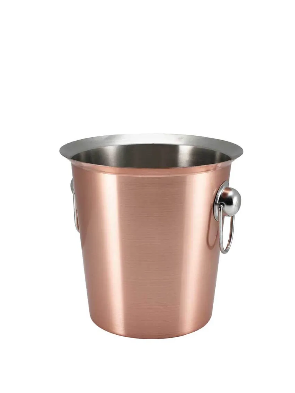 Das Wechselspiel von silberfarbenem und kupferfarbenem Edelstahl gibt dem Flaschenkühler eine besondere Eleganz. Farblich passt zu diesem Sektkühler natürlich am besten roséfarbener Sekt oder Prosecco.