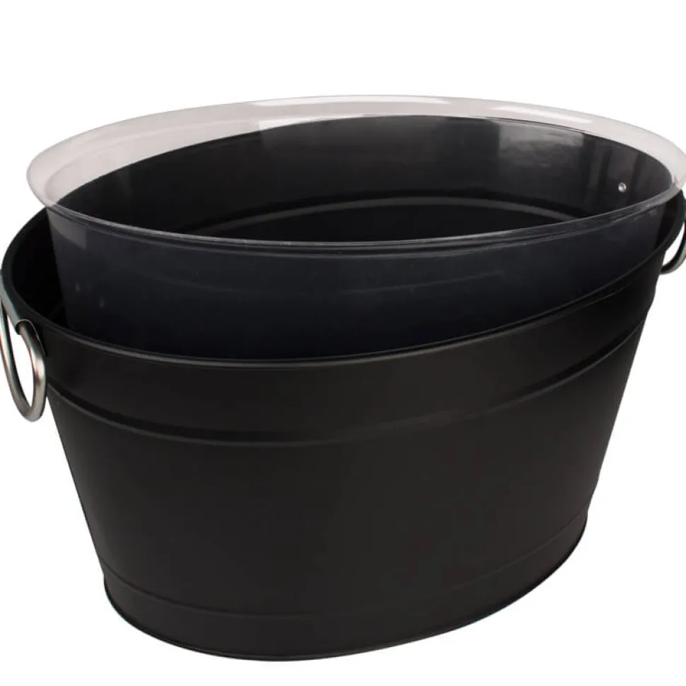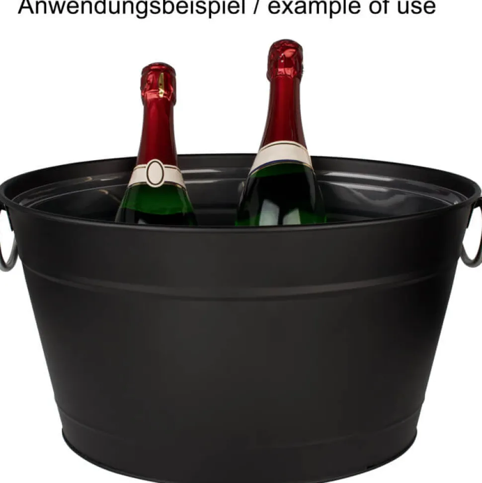 Die Außenseite dieses Multi-Flaschenkühlers ist so beschaffen, dass man mit Kreidestiften darauf schreiben kann. So können Sie die Getränke direkt auf der Getränkewanne bewerben, aber auch Preise oder einen Trinkspruch darauf schreiben. Die äußere schwarze Wanne misst maximal 40x28cm und ist 22,5cm hoch. Der Rand ist angenehm abgerundet, um Verletzungen zu vermeiden. Die transparente innere Wanne hat die maximalen Maße 38x26cm und ist 20,5cm hoch.