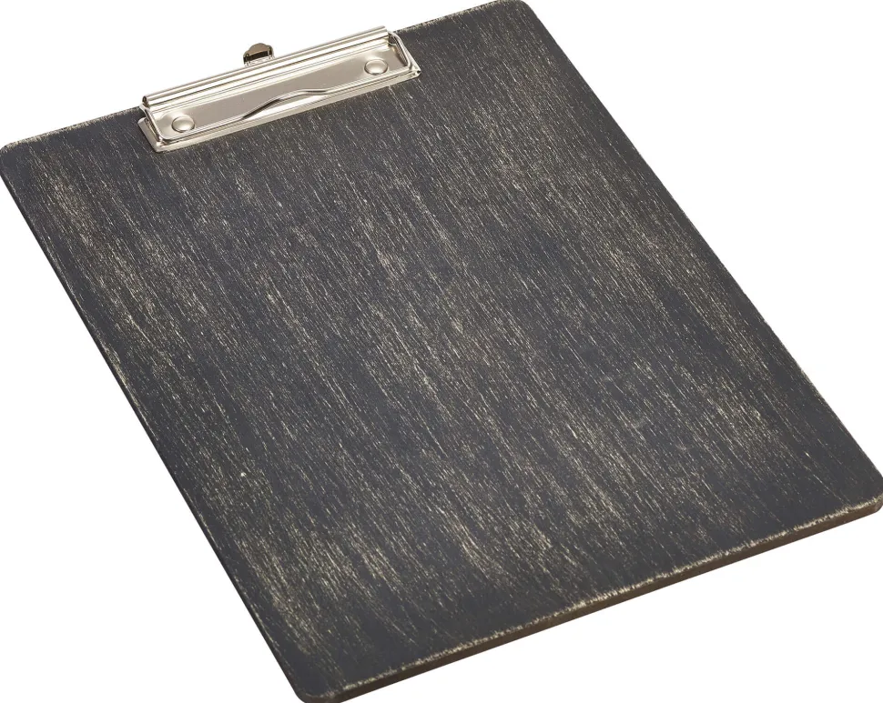 Das DIN A4 Klemmbrett aus Holz ist nicht komplett schwarz lackiert sondern lässt das Holz durchschimmern. Das verleiht dem Holzbrett ein rustikales Aussehen und macht es perfekt für ein modern ungezwungenes Ambiente.