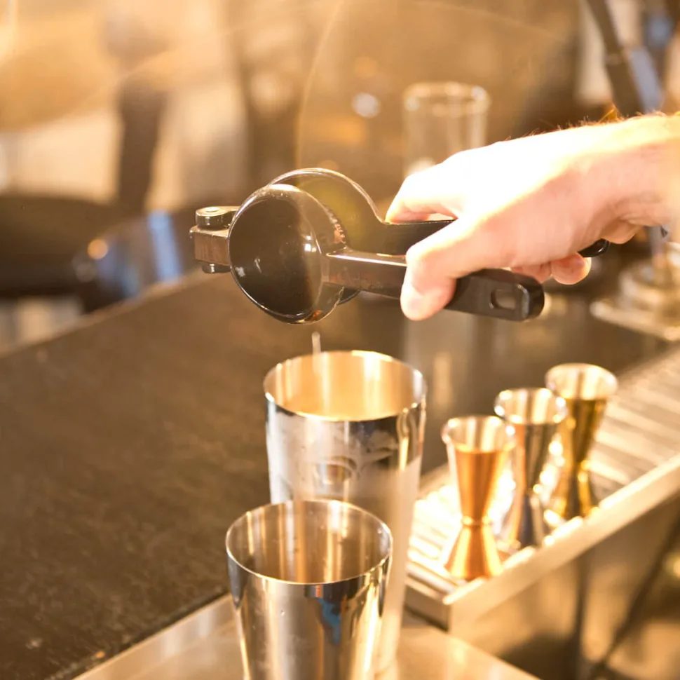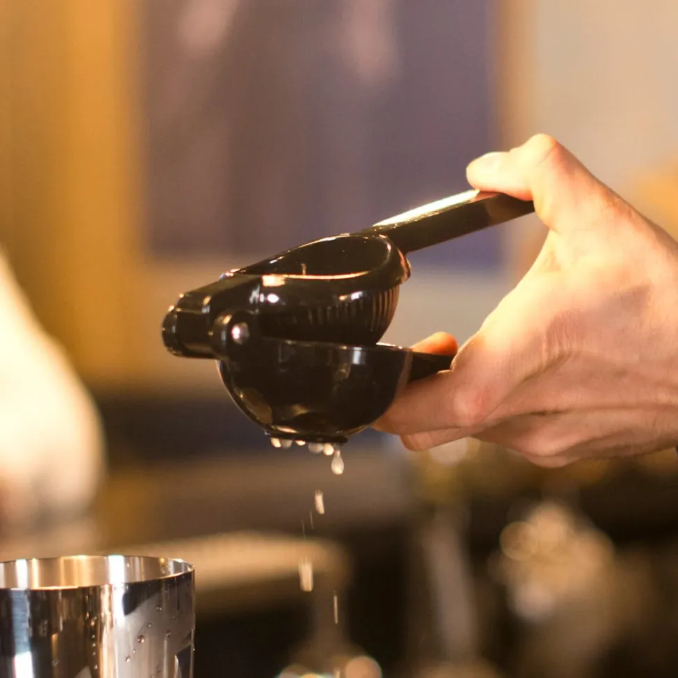 Schneiden Sie die Limette in zwei Hälften und legen Sie eine mit der Schnittfläche nach unten in die Presse und pressen Sie die Frucht durch Zusammendrücken der beiden Arme. Sie werden sehen, dass die Kerne in der Zitruspresse zurückbleiben. Eine Reinigung mit der Hand ist dringend empfohlen, um die schwarze Schicht zu schützen.