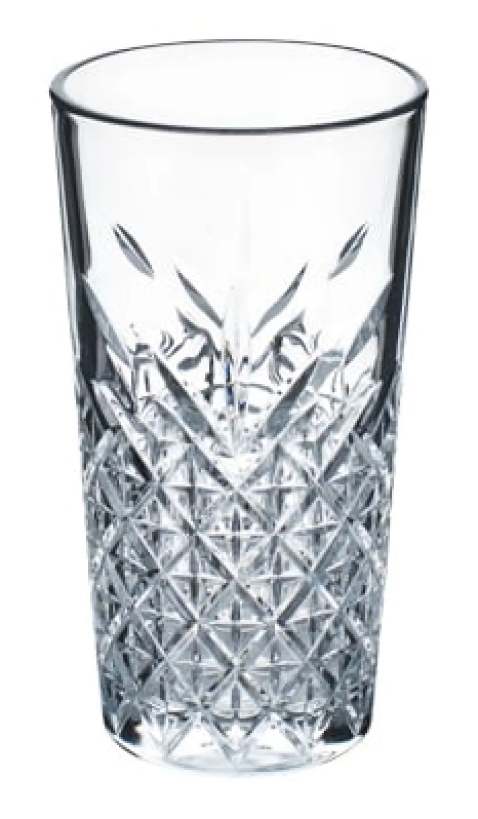 Das Muster aus Rauten und Kreuzen sieht nicht nur elegant und zeitlos aus, sondern verleiht dem Longdrinkglas auch eine strukturierte Oberfläche, die gut und sicher in der Hand liegt. Da das Glas gehärtet wurde, ist es außerdem stabil und langlebig.