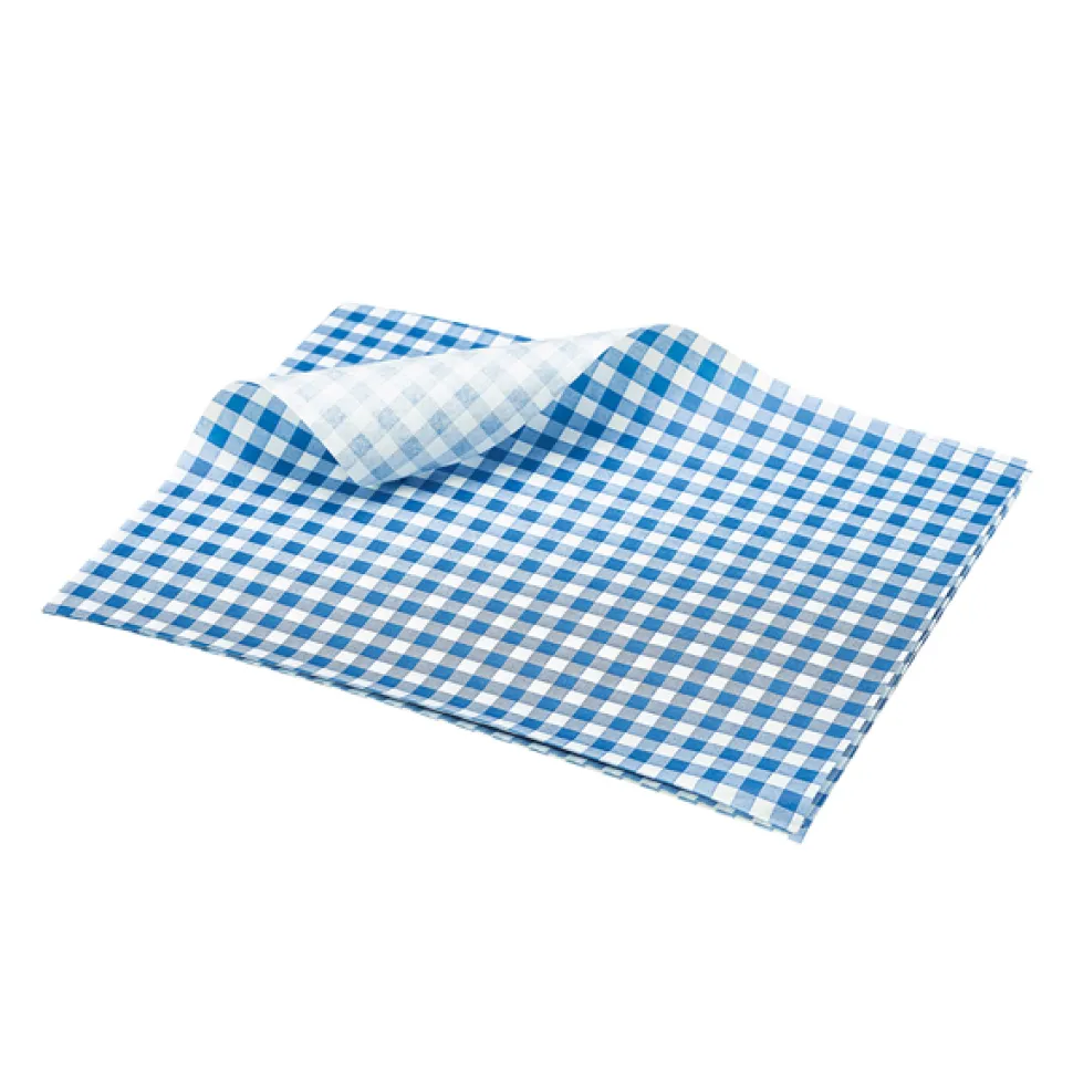 Produktdaten für Pergamentpapier / Fettdichtes Papier, Karomuster blau – 25x20cm (1000 Stk.)