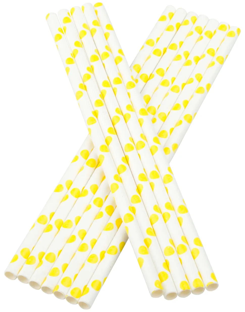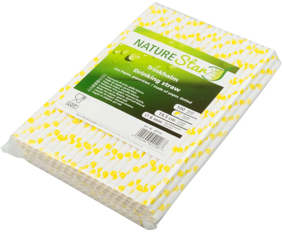 Produktdaten für Trinkhalme, Papier (6x195mm) – Punkte (gelb-weiß) – 100 Stk.