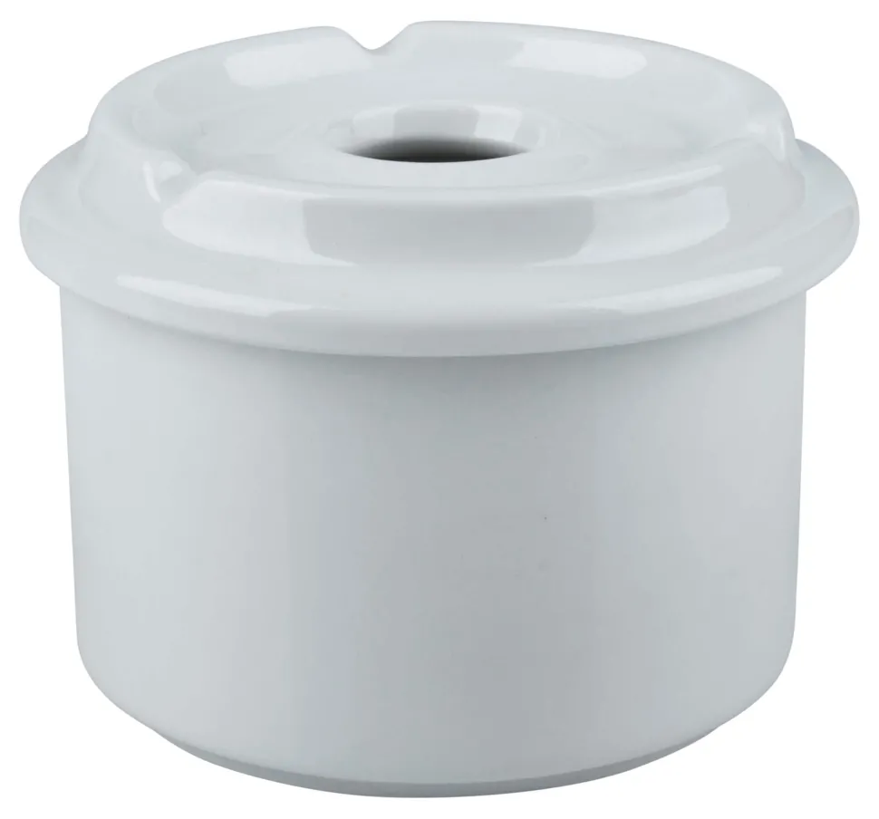 Eine edle Optik, Hitzebeständigkeit und Wetterfestigkeit sind die großen Vorzüge von Porzellan-Aschenbechern. Auch wenn er schneller zu Bruch gehen kann als etwa ein Aschenbecher aus Plastik, sieht ein Porzellan-Aschenbecher einfach hochwertiger aus. Dank der glatten Oberfläche ist dieser weiße Aschenbecher außerdem einfach und rückstandsfrei zu reinigen. Der vielseitige Windaschenbecher ist zudem stapelbar.
